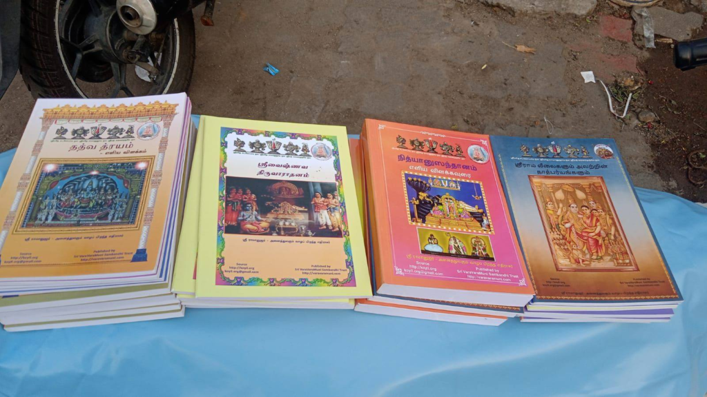 With the grace of our AchAryas and SrIman nArAyaNa, Thothathrinathan Swamy (@~Vinoth Shivaraj) from Mettupalayam (Coimbatore) has distributed koyil.org books.